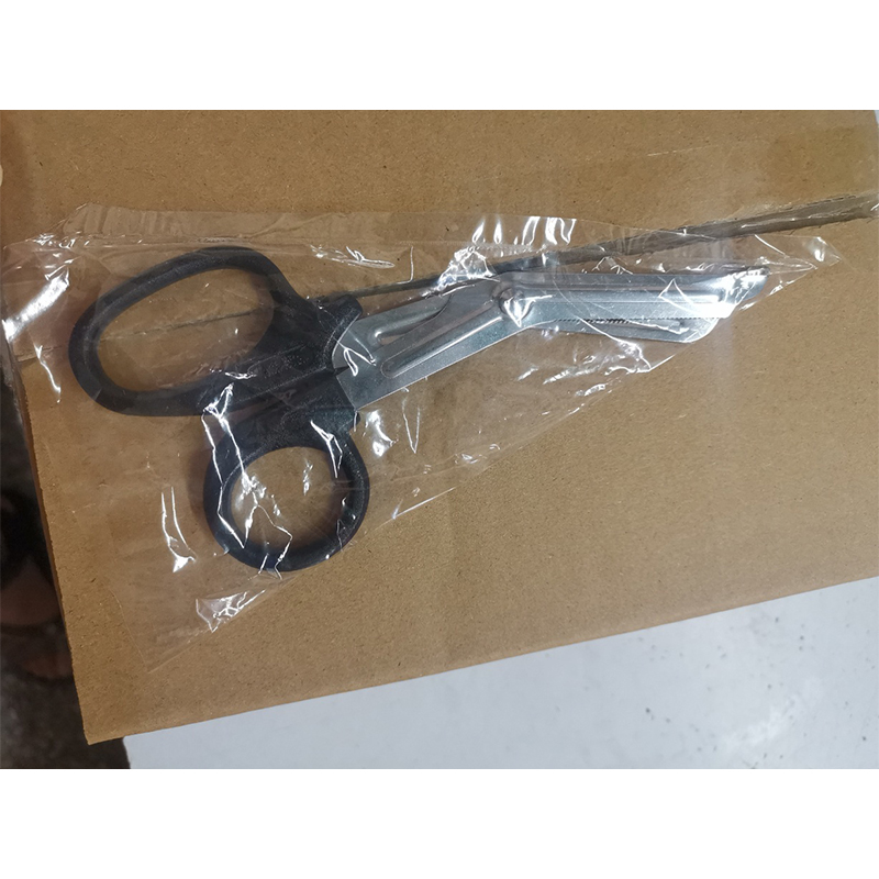 Gunting keras tambahan dengan bilah keras dan pemegang plastik chunky sangat sesuai untuk mengeluarkan pakaian dari mangsa yang cedera