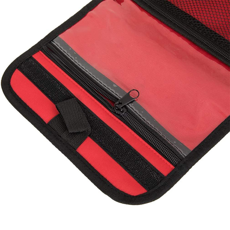Beg pertolongan cemas yang serba boleh telah menjaringkan poket serta bahagian lipatan untuk membolehkan banyak penyimpanan.