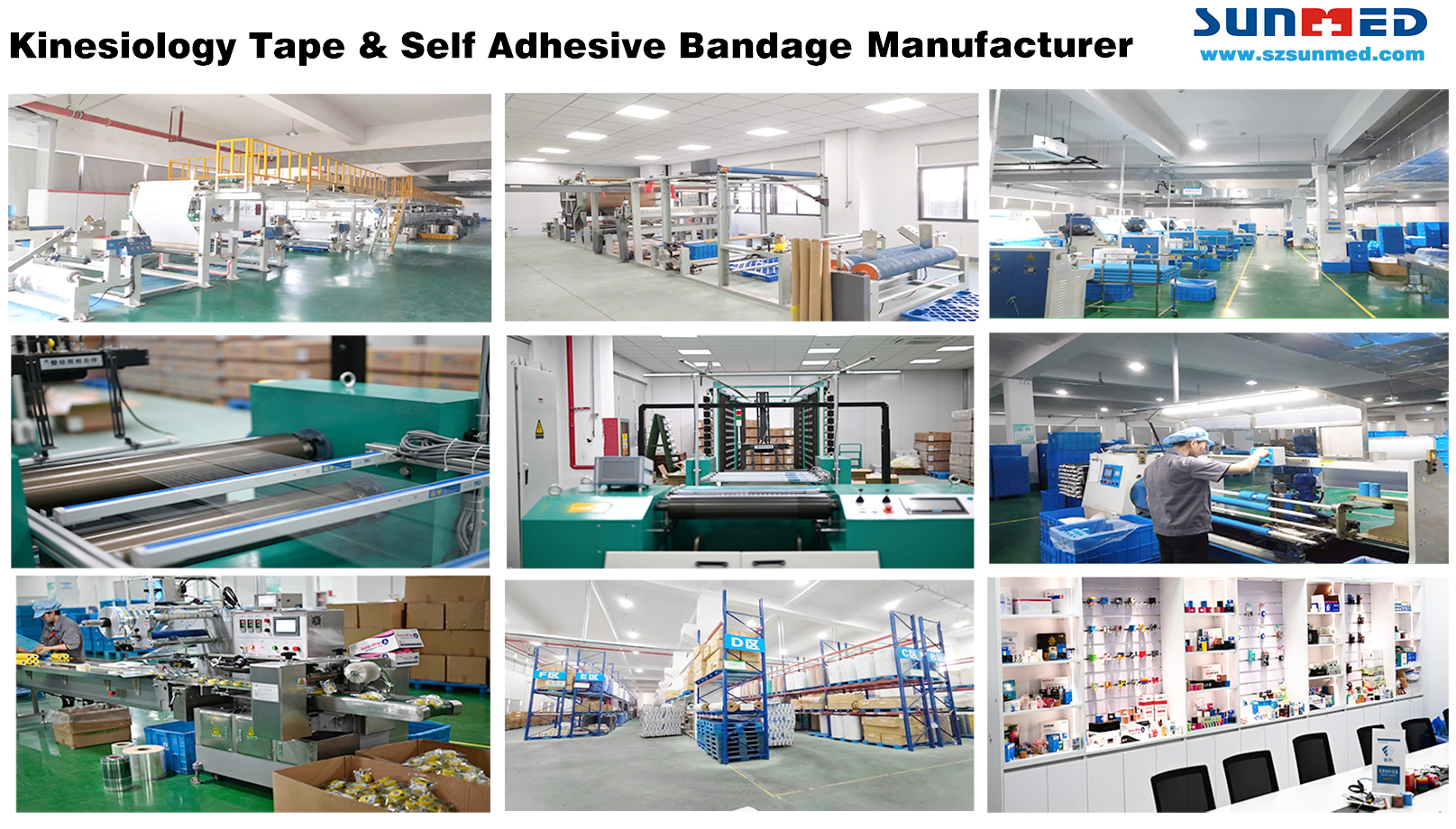 Pasaran kami termasuk hospital, pembekal pertolongan cemas, pasar raya, dan kedai sukan runcit. Pada tahun 2008, kami menubuhkan kilang pertolongan cemas kami untuk memenuhi tuntutan pelanggan pertolongan cemas kami. Pada tahun 2021, untuk menampung keperluan pelanggan kami, kami menubuhkan kilang kami sendiri untuk pita kinesiologi, pembalut kohesif (bungkus diri), dan pembalut pelekat elastik.